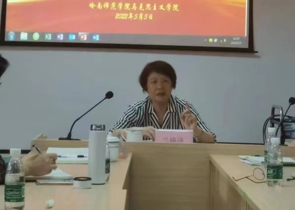 兰艳泽强调,要进一步深入学习习近平总书记关于思政课建设的重要论述,近期,特别是要加强学习习近平总书记在中国人民大学考察时的重要讲话精神,要把总书记讲话精神及时融入思政课教学中,真正发挥思政课在高校立德树人中的关键课程作用。兰书记对马院建设和思政课改革创新提出了三点要求:一是要发挥党建引领作用。马院党的建设工作要通过学习、研究、宣传,在促进学校高质量发展上落地落实。要建立“大党建”概念,要沿着学校第一次党代会提出的“三步走”发展战略不断努力,要为学校形成的“强师范、厚理工、兴商科”办学思路贡献力量。二是要高质量推进思政课建设守正创新。兰艳泽指出,从习近平总书记到党中央都高度重视思政课建设,全校上下都要提高政治站位,增强“四个意识”,坚定“四个自信”,做到“两个维护”。办好思政课,关键在教师。要按照总书记提出的“六要”标准建设一支高素质的思政课教师队伍。要以总书记提出的“八个相统一”方法不断推进思政课教学改革。要把我校校史和红色基因融入思政课教学中,每位思政课教师都要成为校史、红色基因文化的传播者,讲好岭师故事,久久为功,持之以恒。三是要持续加强教师队伍建设。思政课教师队伍不仅在数量上要达到教育部规定的要求,在质量上也要通过“传帮带”机制不断提高青年教师素质和能力。要加大青年教师的培养和培训工作,要尽快实现教师培养培训全覆盖。要加强思政课智慧课堂建设。通过建立案例库、课程库、精品课堂库等,提升思政课教学智能化和数字化水平。要扎实推进“互联网+思政课”改革,“线上线下”融合,打造独具特色品牌的高校思政“金课”。