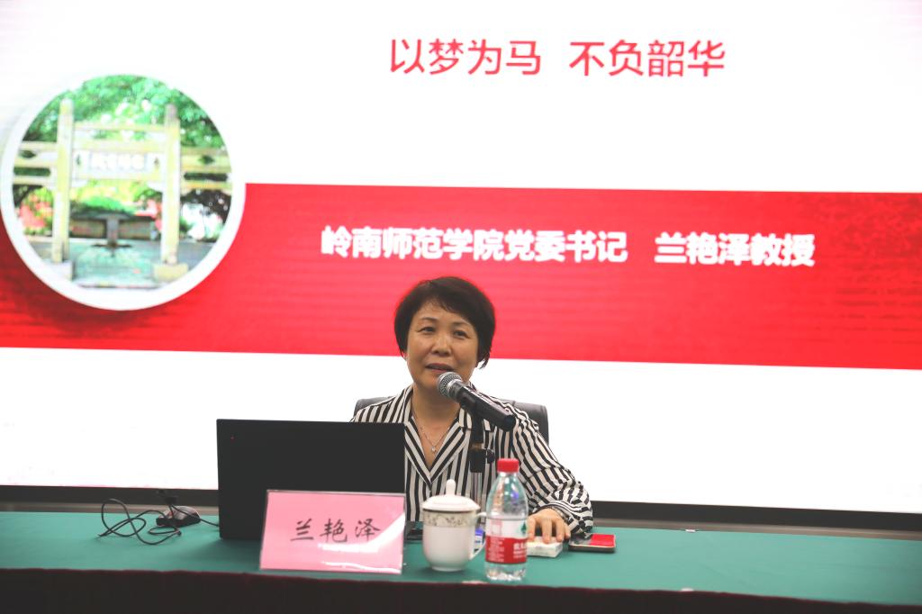 “中国特色社会主义新时代,是青年大有可为,也必将大有作为的大时代。”兰艳泽要求岭师青年牢记习近平总书记对青年的殷殷希望和嘱托,勉励岭师青年以梦为马、不负韶华,在人生的大舞台上展现自己的风姿,绽放青春。她对岭师青年特别是大学生党员如何担当时代大任、发出时代最强音提出建议和希望,强调大家要弘扬伟大建党精神,传承红色基因,赓续红色血脉;大力弘扬岭师精神谱系中的书院精神、革命精神、校训精神以及新时代岭师人精神内涵中追求卓越、大爱、奉献的精神,继续为岭师精神谱系增光添彩!