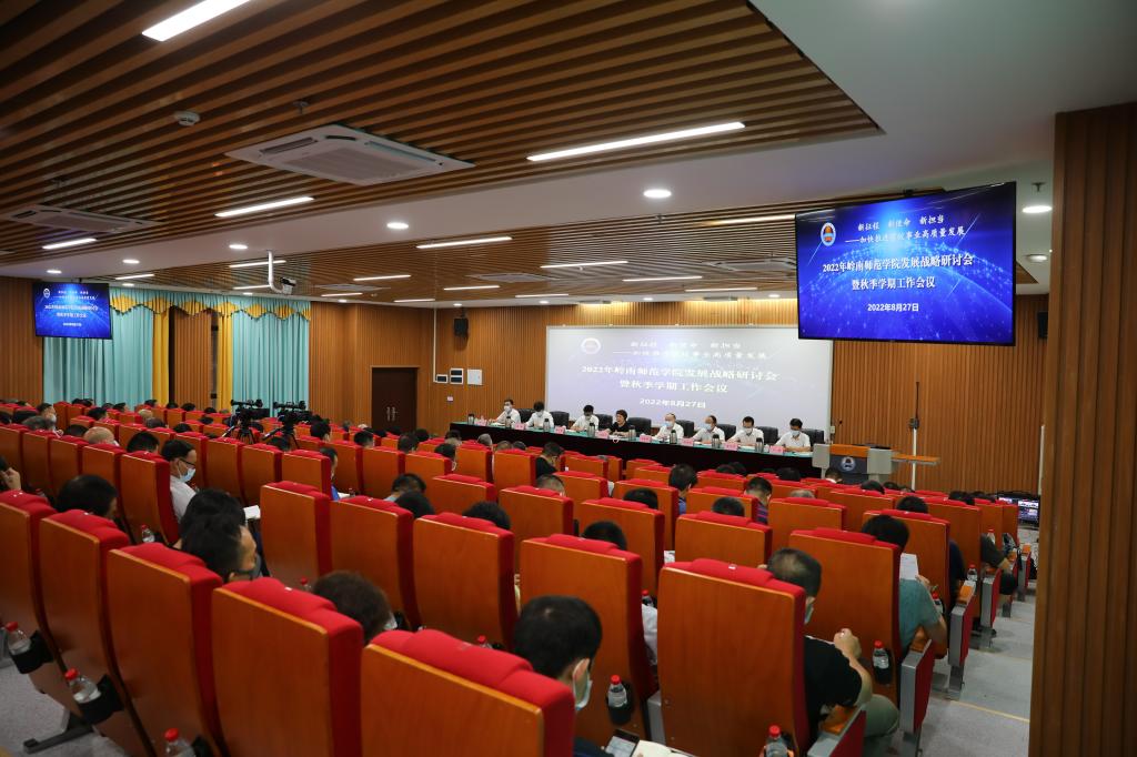 岭师新闻中心讯:在新起点、新征程上,如何深化治理改革、激发办学活力,进一步激励广大师生员工担起新使命、践行新担当,奋力开创学校高质量发展新局面,早日实现建成特色鲜明的高水平师范大学的战略目标,是当前全校上下的共同课题。8月27日,学校召开2022年发展战略研讨会暨秋季学期工作会议,学习贯彻上级会议精神,总结上半年工作,部署安排下半年工作任务,谋划推进学校事业高质量发展。