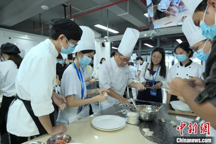 视觉与听觉还在极致的享受中回味,味觉又紧跟其上。中外学生烹饪交流体验活动中,岭南师范学院食品科学与工程学院师生展示了糖醋咕噜肉、秘制拌虾、饺子等中式菜肴的制作过程,并邀请外国留学生们制作和品尝。“这和我家乡的食物完全不一样!”中式佳肴的独特滋味从舌尖弥漫开,留学生们赞不绝口。