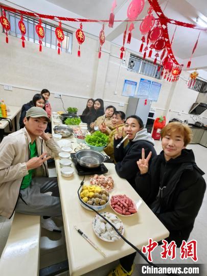 除夕当天下午四时许,在广东岭南师范学院,一群来自五湖四海的来华留学生齐聚博雅苑暖心餐厅,欢度中国新春佳节。岭南师范学院留学生学校国际交流与合作处与学生处公寓中心的老师们,也早早就为留学生准备好了迎新春的各种物品。