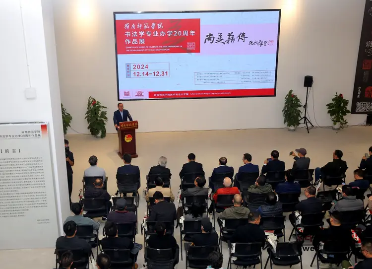 12月14日,在岭南师范学院迎来师范教育120年之际,美术与设计学院在学校美术馆举办“尚美薪传”书法学专业办学20周年作品展,展出领导嘉宾、历届校友、师生的优秀作品200多幅。学校党委副书记、校长阳爱民宣布展览开幕。