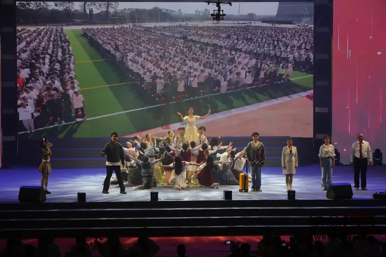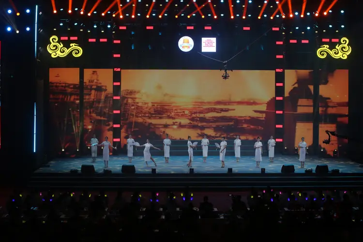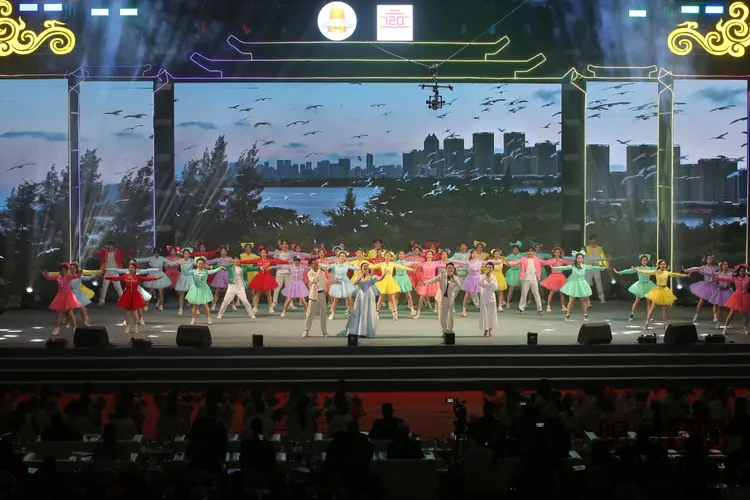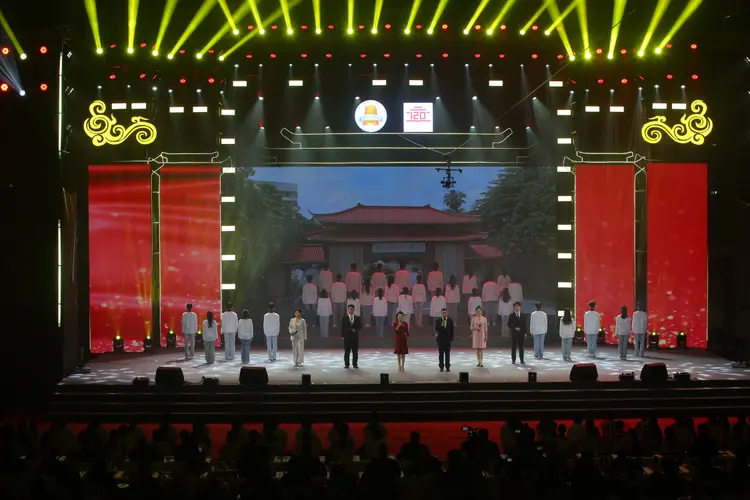 晚会上,演员们用歌声祝福学校迈上新征程,逐梦新时代。本次晚会还通过线上直播在寸金校区和湖光校区同步展开,屏幕内外,大家跨越距离齐聚,心连心,情牵情共襄岭师师范教育120周年。