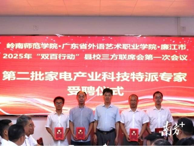 “双百行动”实施以来,岭南师范学院协同广外艺与廉江市委、市政府、通力协作,聚焦基础教育、科技创新、产业振兴、文化与乡村建设、绿美乡村建设、人才培养等六大领域,扎实推进各项工作。2025年,岭南师院将重点聚焦教育体制、科技创新、产业融合、风貌提升、文化品牌等五个领域,系统推进内涵式发展与综合实力跃升,充分发挥高校人才、智力和技术优势,当好“智力引擎”,推动更多科研成果在廉江落地转化;做好“人才摇篮”,为县域输送“下得去、留得住、用得上”的实用人才。