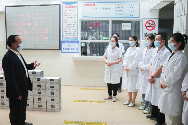 岭师新闻中心讯:5月17日下午,学校副校长、工会主席苏古发来到门诊部,看望慰问全体医护人员,代表学校送上护士节慰问品和最诚挚的节日祝福与问候。