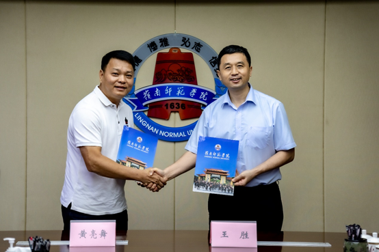 王胜首先对黄亮舞一行来校交流表示热烈欢迎。他从办学历史与发展、办学定位以及科学研究等方面介绍了学校基本情况。指出,学校作为一所扎根地方的百年师范院校,近年来坚持“师范性、教学型,地方性、应用型”的办学定位和“强师范、厚理工、兴商科”办学思路,为粤西地区乃至广东省的教育文化事业提供了重要人才支撑,为推动经济社会发展做出了重要贡献。