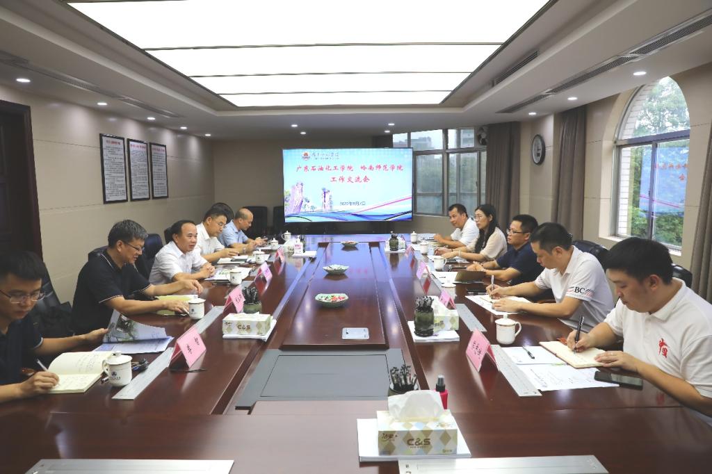 广东石油化工学院教务处处长刘美、资产公司总经理林军、资产公司副总经理梁郁柱、资产公司办公司主任苏志诚,岭南师范学院校长办公室主任、教育服务公司董事长杨子江,教务处处长周立群、教育服务公司总经理凌贤郅参加了座谈会。