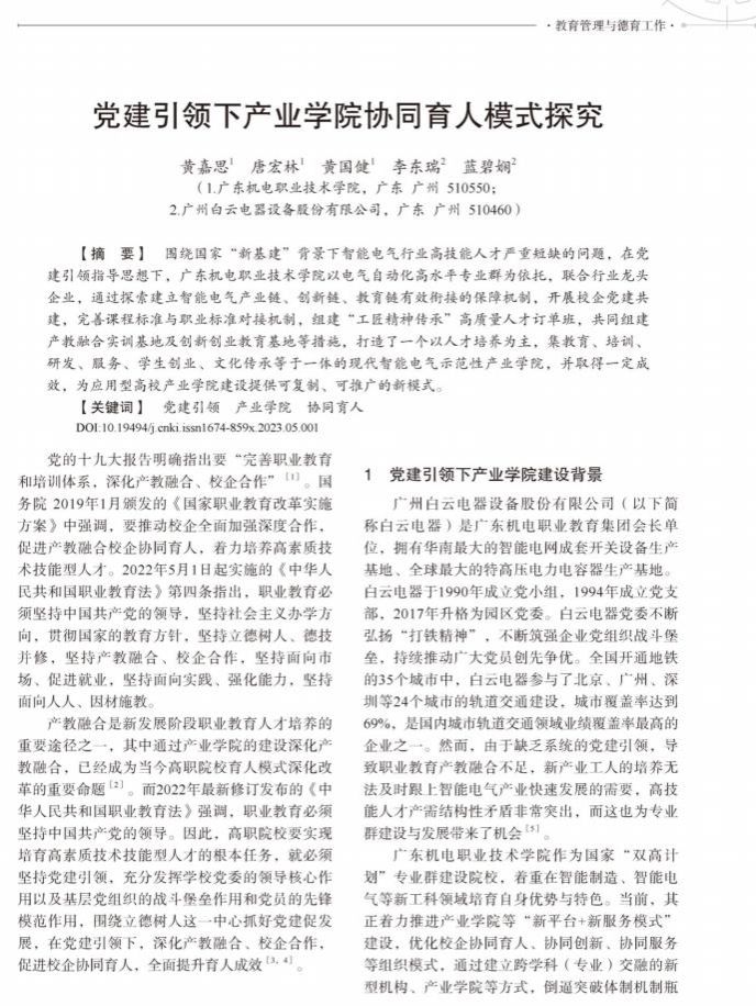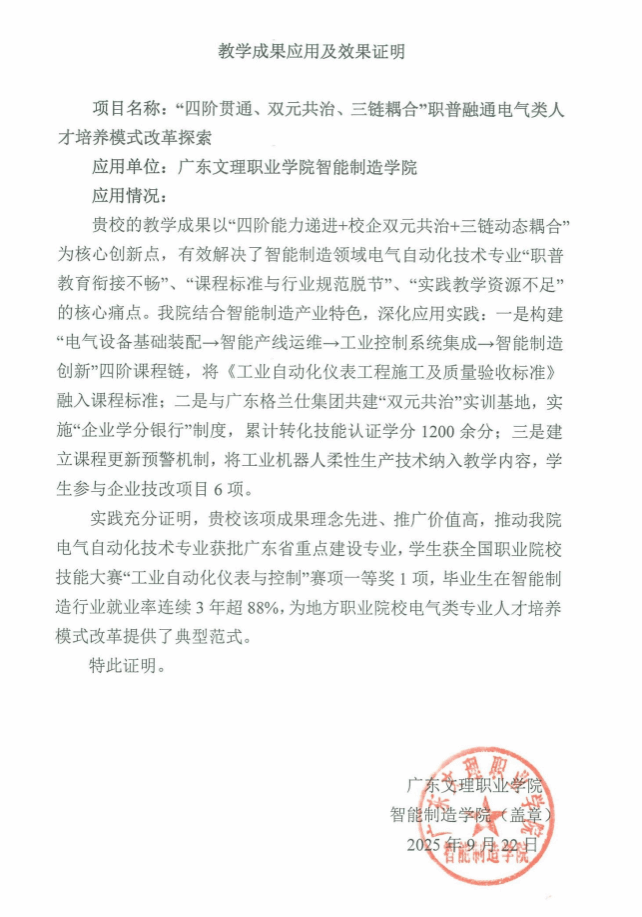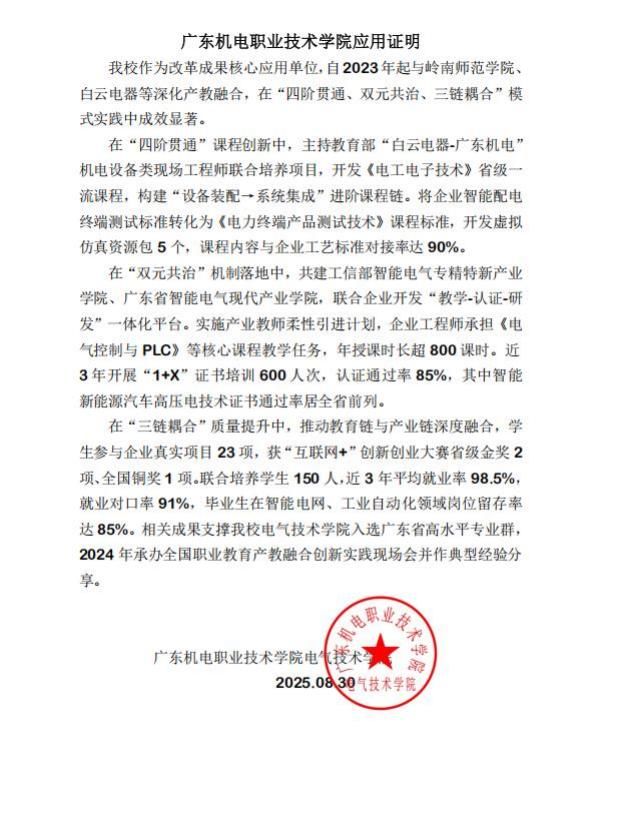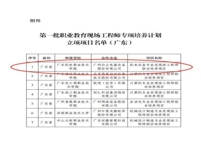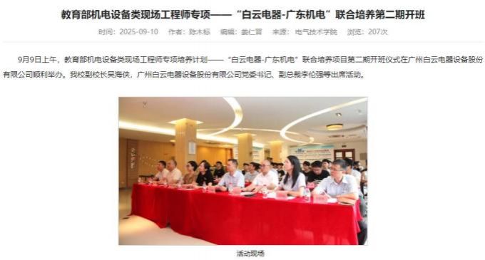 1.2 “白云电器-广东机电”教育部机电设备类现场工程师联合培养项目
