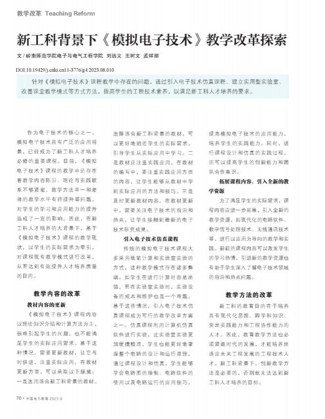 4.1 新工科背景下《模拟电子技术》教学改革探索