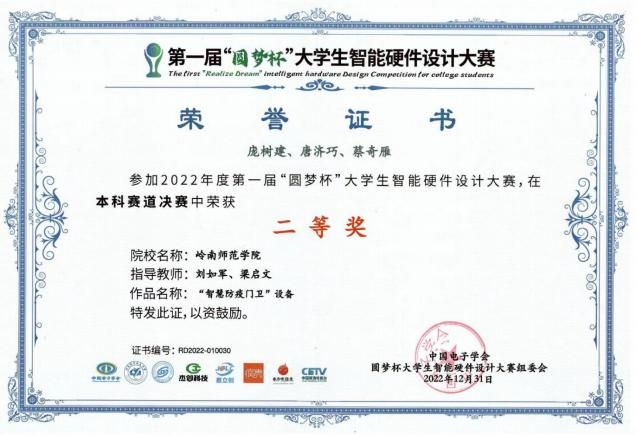 5.4 第一届“圆梦杯”大学生智能硬件设计大赛二等奖