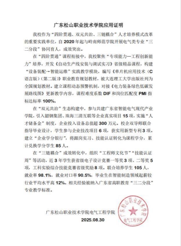 1.13 与广东松山职业技术学院三二分段专升本协同育人项目