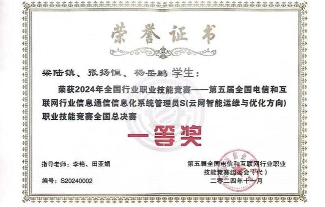 5.15 第五届全国电信和互联网行业信息通信信息化系统管理员职业技能竞赛 一等奖