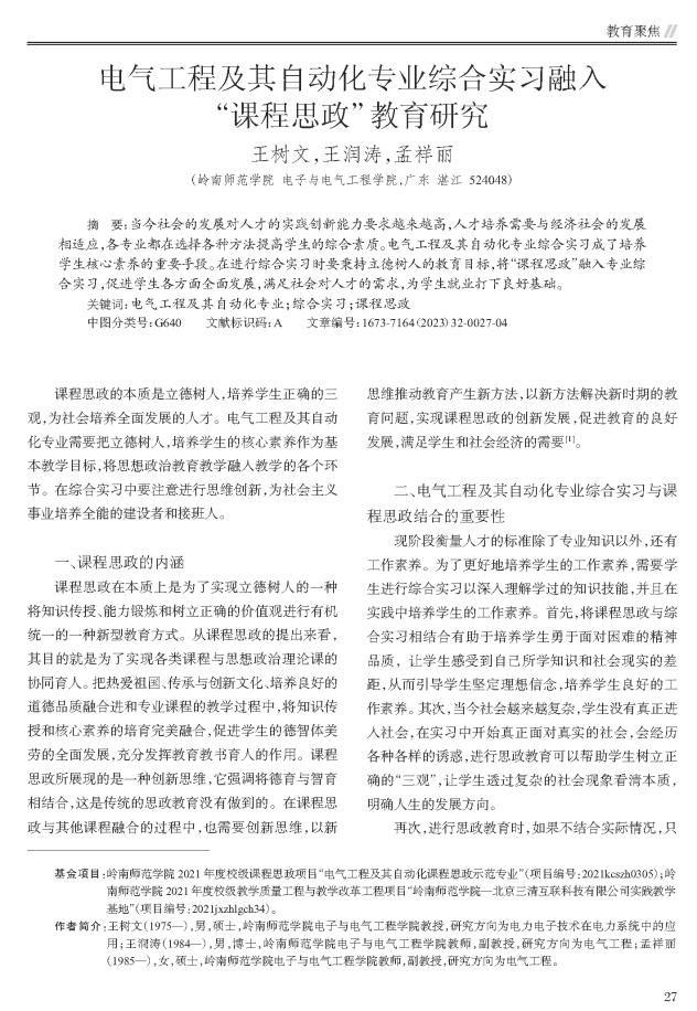 4.4 电气工程及其自动化专业综合实习融入“课程思政”教育研究
