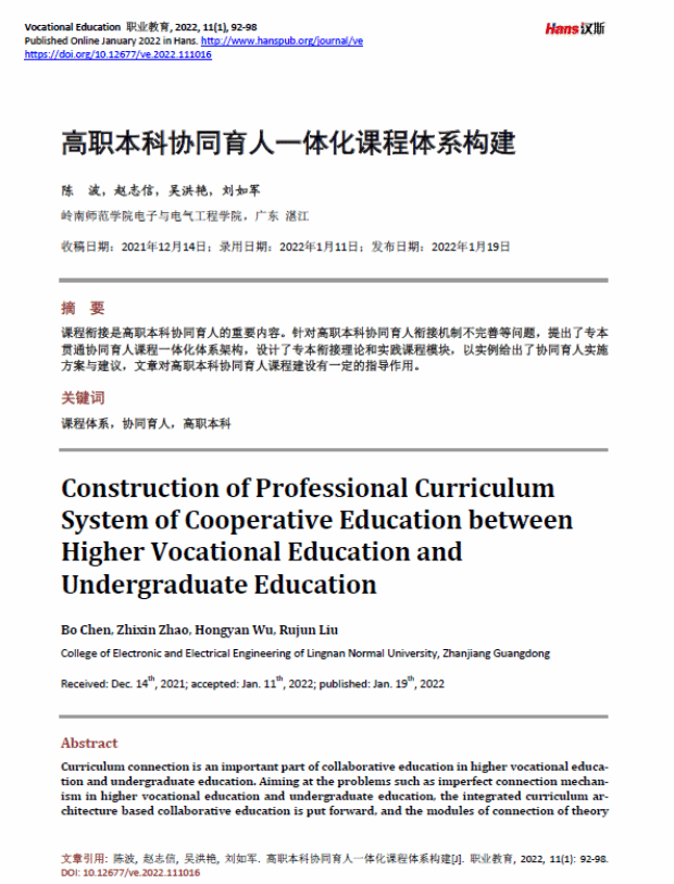 2.1 “四阶贯通、双元共治、三链耦合”职普融通电气类人才培养模式改革探索