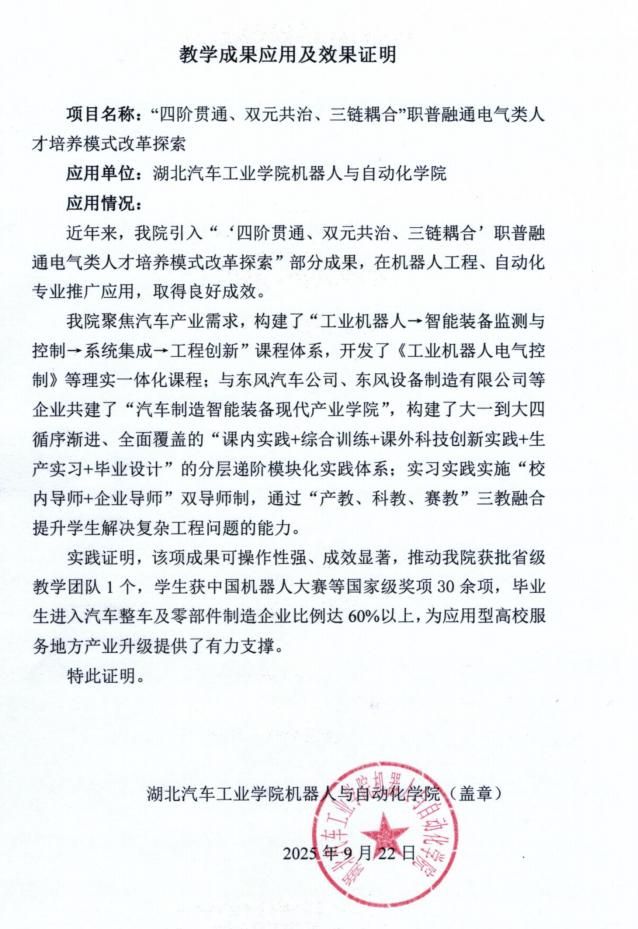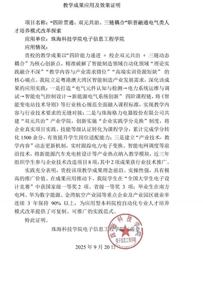 为验证电子与电气工程学院教学成果在提升学生能力与人才培养质量上的成效,学校教务处贯彻用人单位 跟踪回访机制,通过定期问卷调研、企业走访等方式,系统收集用人单位对毕业生能力的评价。本附件汇总 2023-2025 年跟踪回访结果,具体包括:回访实施概况、满意度量化数据、典型好评案例及用人单位推荐证 明, 充分体现“学生能力受到好评,用人单位满意度高”的教学成果。”
