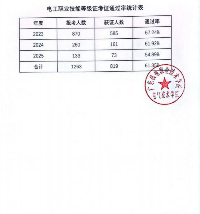 7.1 电工高压、低压上岗证考证通过率统计情况