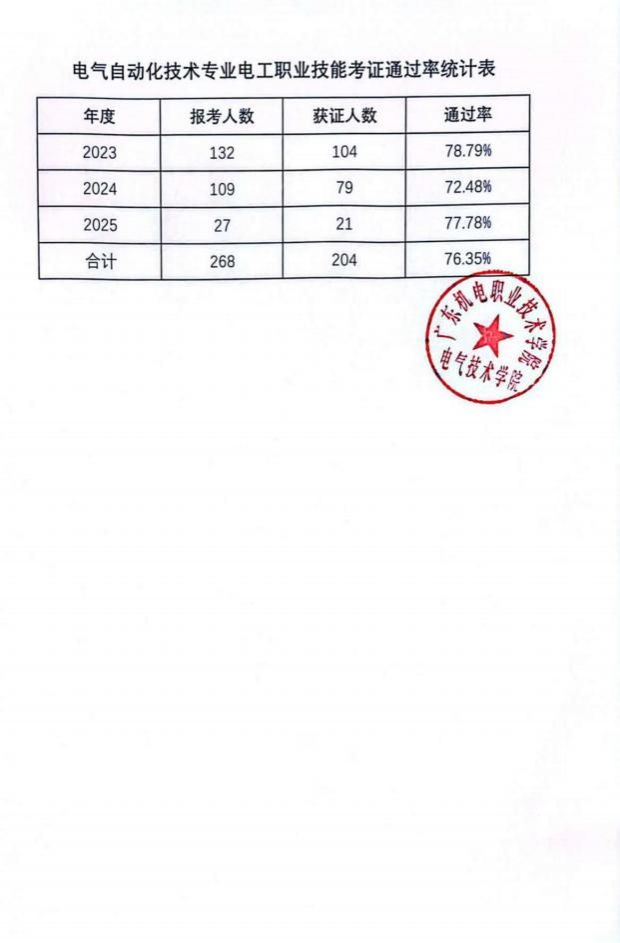7.3 电气自动化技术专业电工职业技能考证通过率统计情况