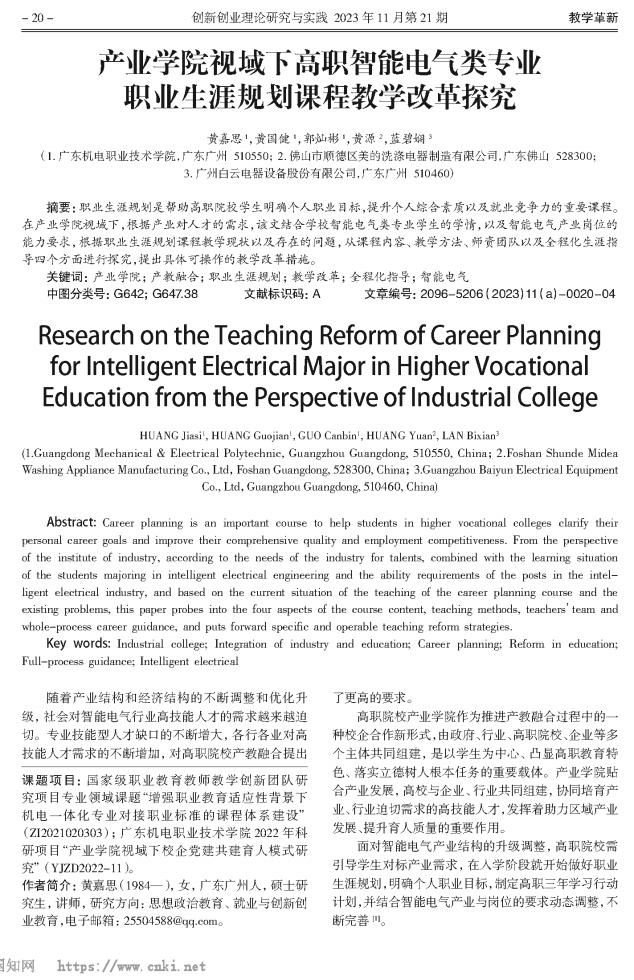 4.6 产业学院视域下高职智能电气类专业职业生涯规划课程教学改革探究