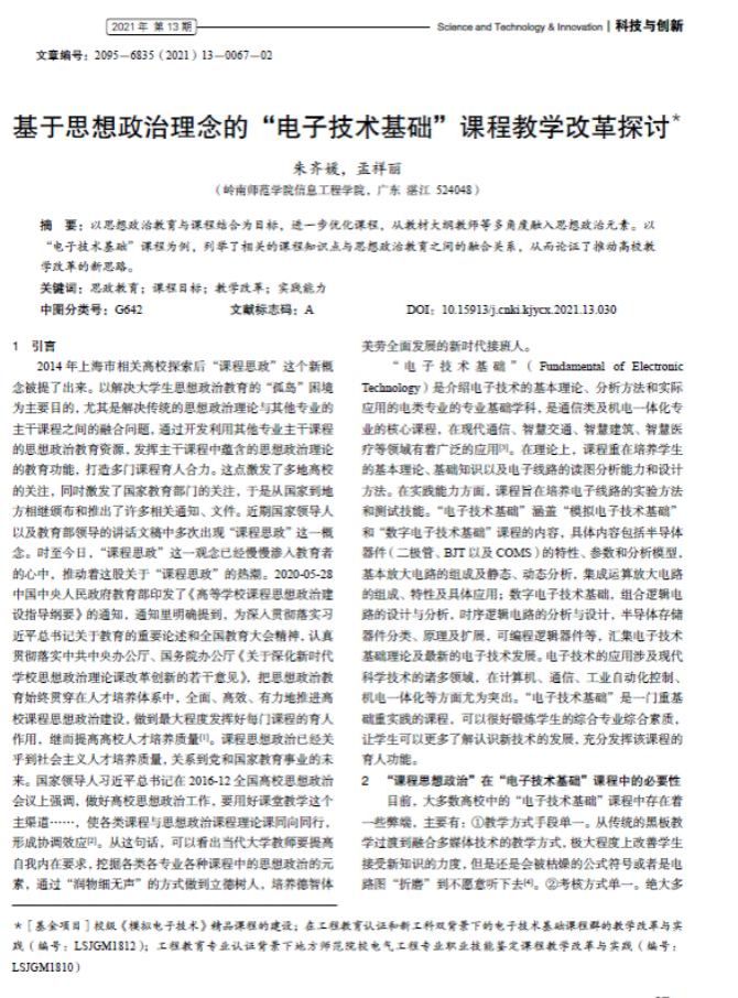 4.10 基于思想政治理念的“电子技术基础”课程教学改革探讨