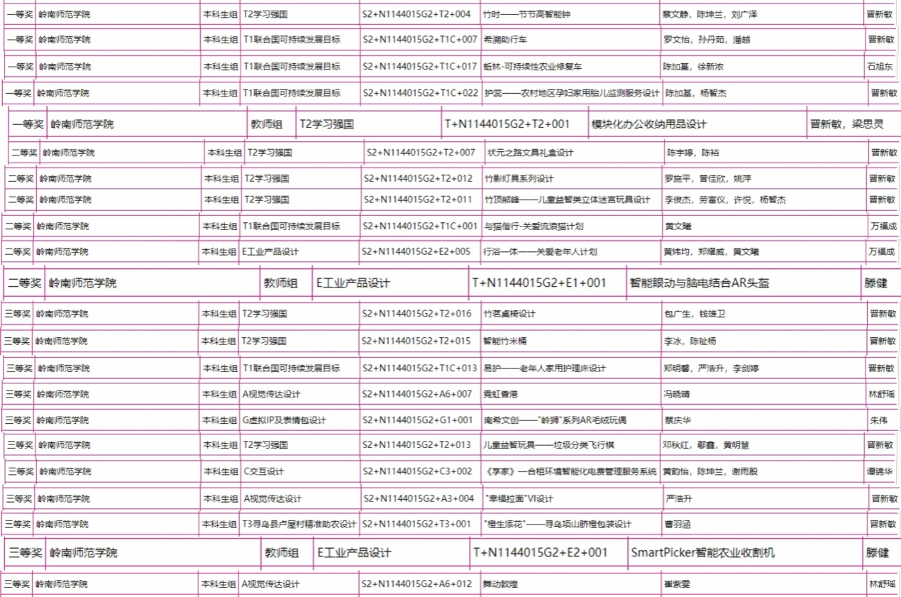 我校师生获奖作品公示截图