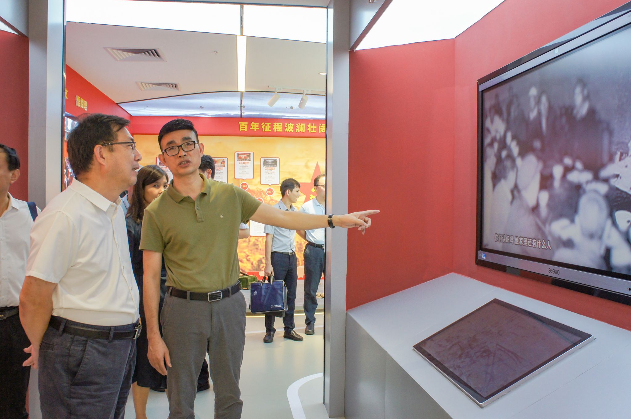 谢冠华一行在“岭南师范学院党建文化学习教育空间”调研
