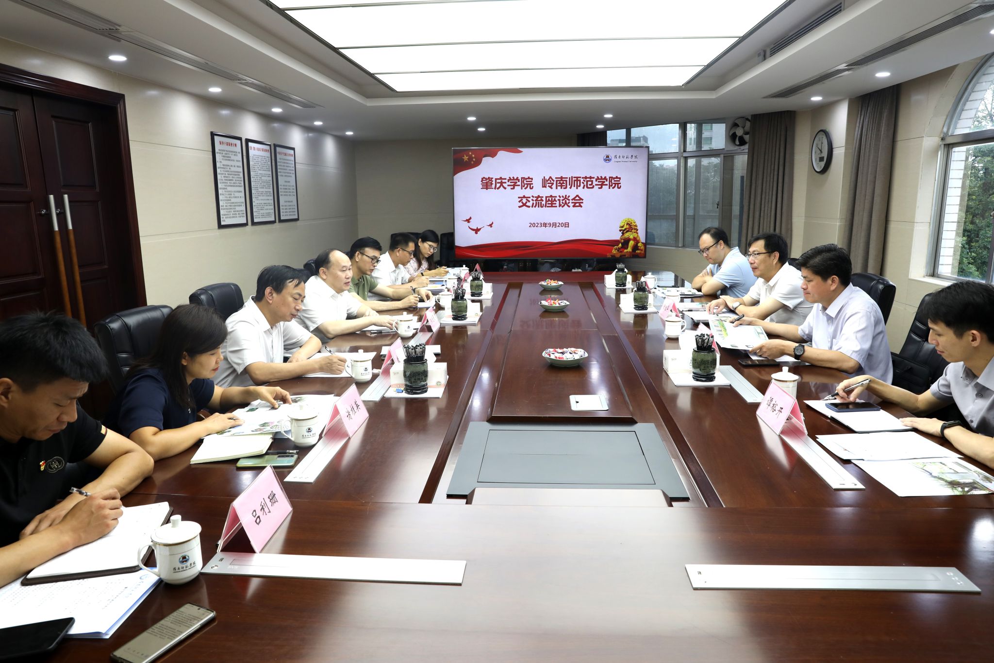 岭师新闻中心讯:9月20日,肇庆学院党委书记谢冠华一行莅校调研交流,学校校长阳爱民主持交流会并致欢迎辞,党委副书记黄达海,党委常委、组织部统战部部长赫云鹏出席交流会。