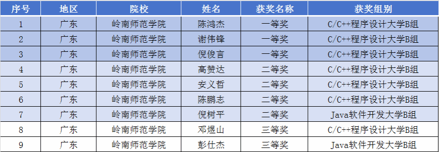 近日,在第十五届“蓝桥杯”全国软件和信息技术专业人才大赛个人赛(省赛)上传来喜讯,计算机与智能教育学院学子在大赛中荣获一等奖3项、二等奖4项、三等奖2项。其中陈鸿杰,谢伟锋和倪俊言三位同学以一等奖的优异成绩晋级全国总决赛。
