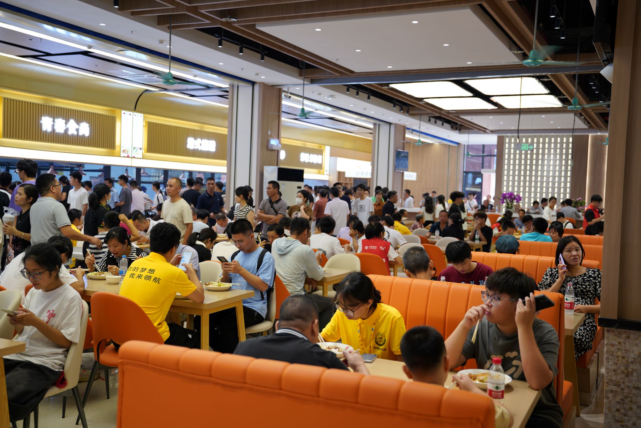 新生和家长一同在岭师新校区饭堂用餐