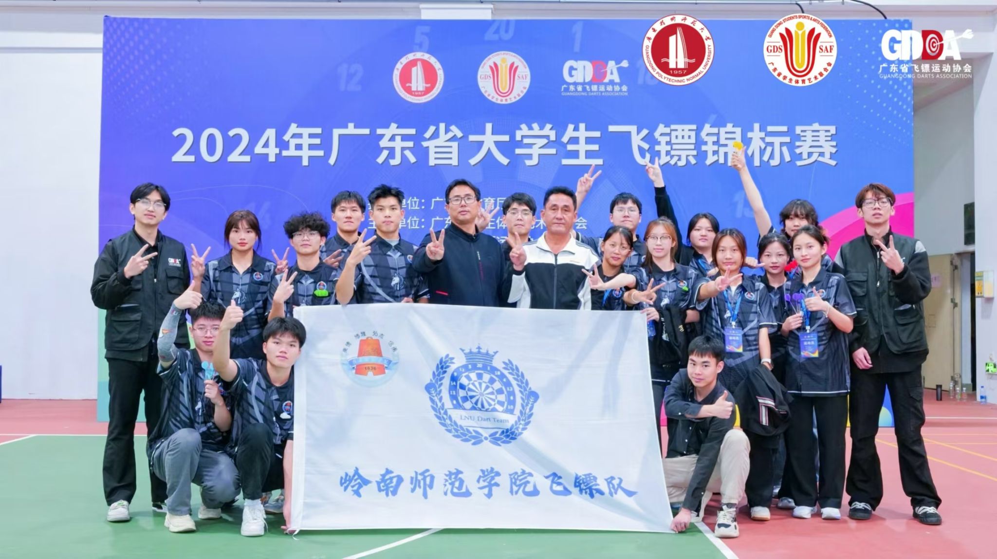 12月7-8日,2024年广东省大学生飞镖锦标赛在广东技术师范大学举行。学校代表队在教练员江正、赵宪法的带领下,夺得7项冠军、5项亚军、1项季军,并获乙组团体总分第一名,甲组团体总分第二名。其中:乙组付裕获女子个人高分赛第一名;乙组卢灿宇获男子个人501减分赛第一名;乙组尹永恒获女子个人301减分赛第一名;乙组韦静文、卢灿宇获混双501减分赛第一名。食品科学与工程学院杨玉婷获甲组女子个人501减分赛第一名;机电工程学院颜富仪获甲组女子标准米老鼠赛第一名;地理科学学院陈思奕获甲组女子个人高分赛第一名。