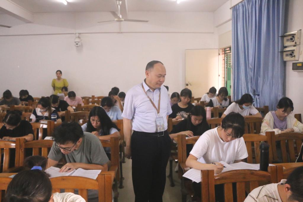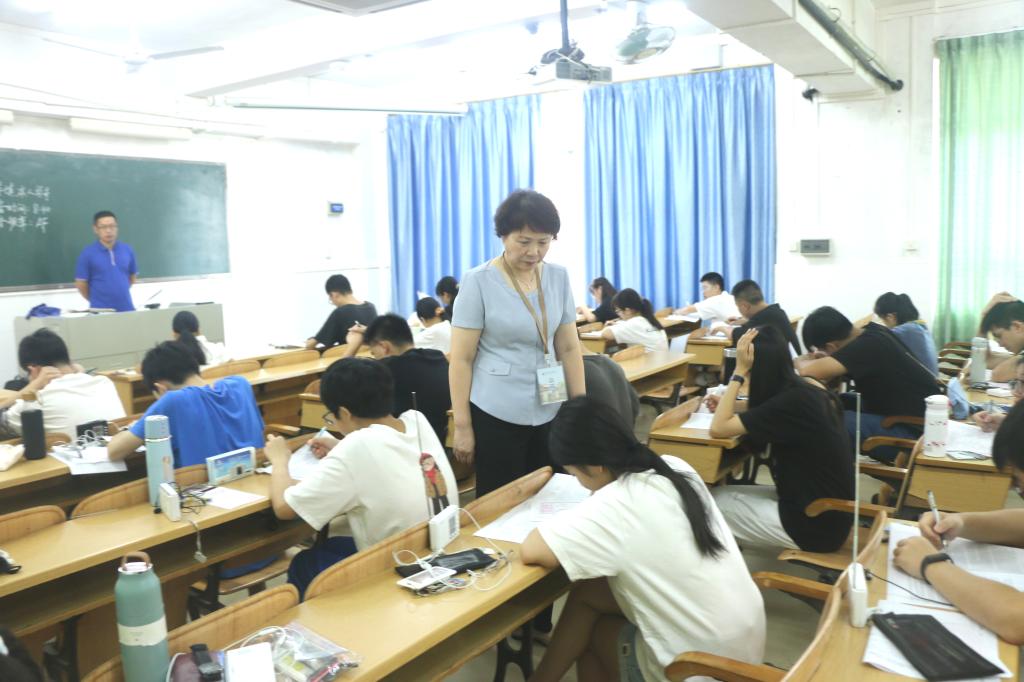 学校党委书记兰艳泽在第四教学楼外语考试考场进行巡考