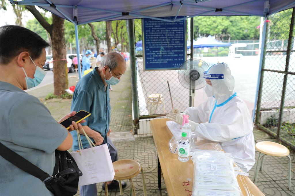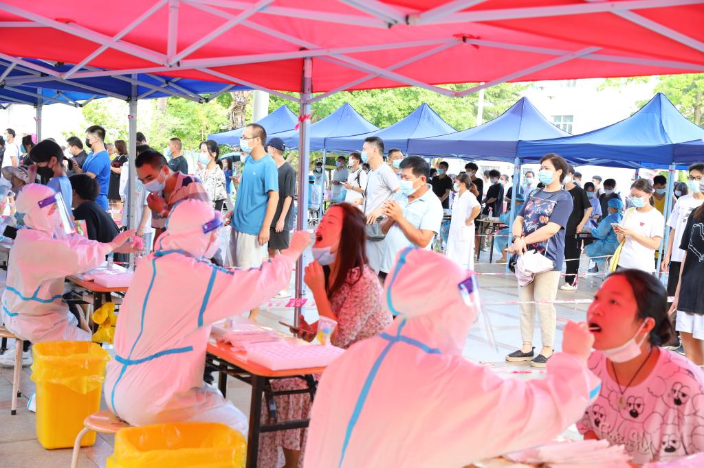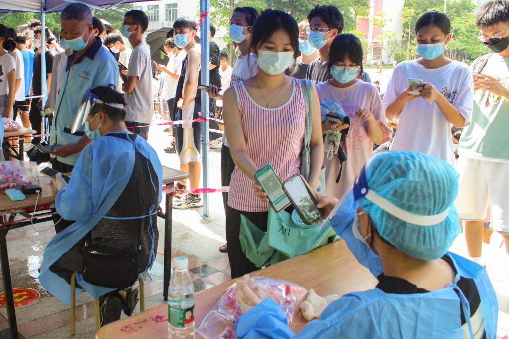 8月29日,师生在雷阳广场采样点进行核酸检测(赵宇清摄)