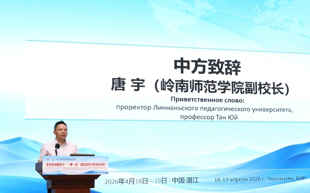 4月18日,2026年哲学文化研究国际学术会议在岭南师范学院正式开幕。来自中国、白俄罗斯、俄罗斯、波兰四国的53位专家学者齐聚湛江,围绕“全球文明倡议与‘一带一路’倡议背景下的文化共存”核心主题,开展跨地域、跨文化、跨学科深度研讨,凝聚学术共识,助力欧亚人文交流与多边学术合作走深走实。