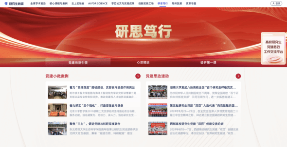 通过研究生微党课、党建小微案例、心理健康指南、读研第一课等资源,帮助研究生树立正确的人生观与价值观,为其思想与心灵成长提供支持保障。