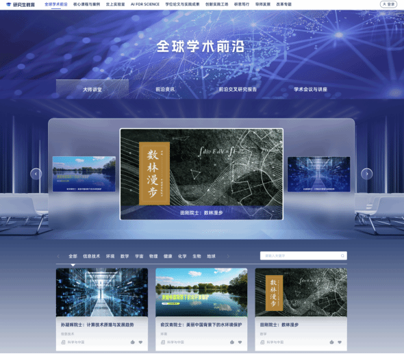 “全球学术前沿”模块:上新“前沿交叉研究报告”专栏,开启洞察新兴交叉学科和前沿领域的崭新窗口,新增80余门院士领衔大师讲堂、学术讲座,目前该模块已汇聚190余门院士领衔大师讲堂、1.2万余条前沿资讯。